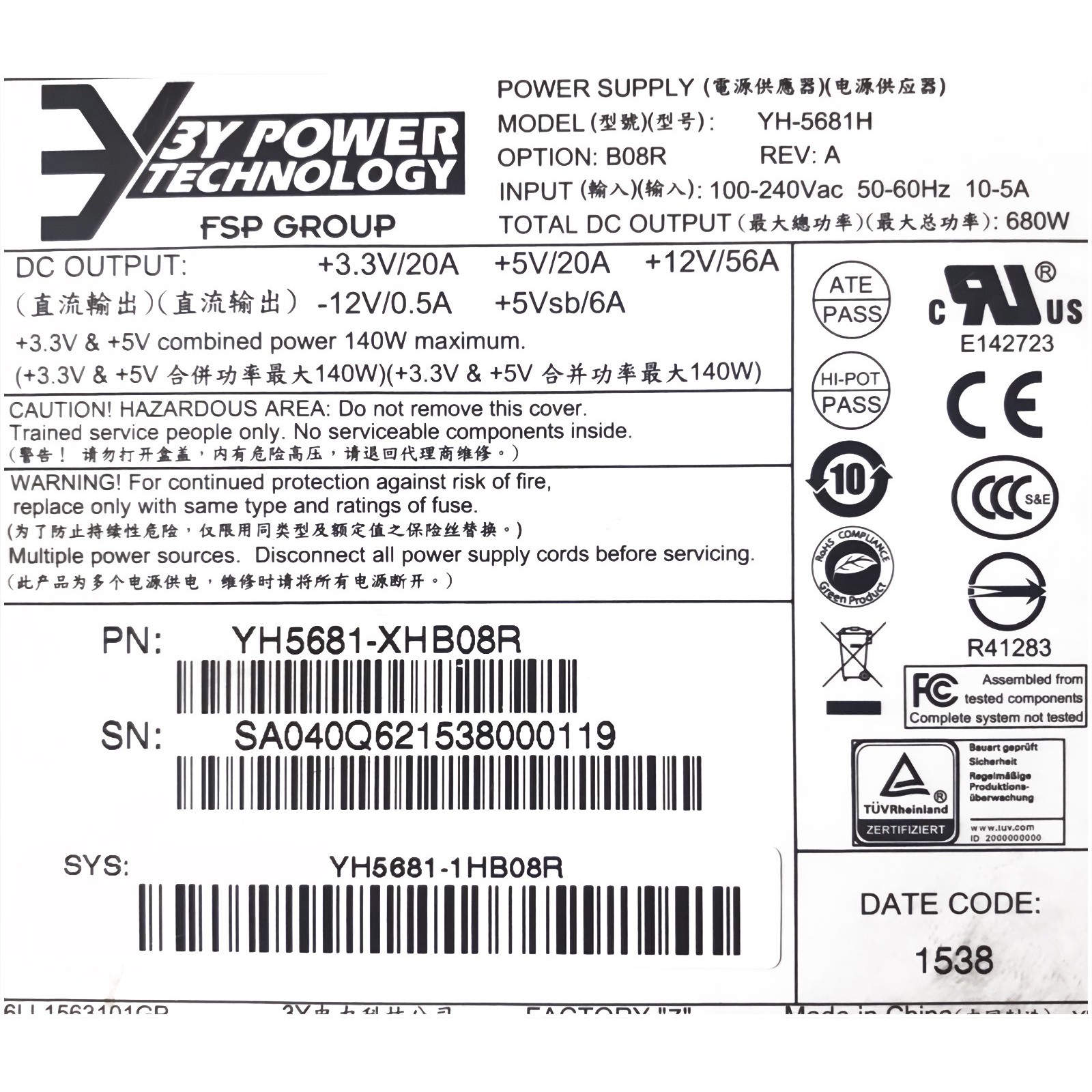 3Y Power Technology YH-5681 H Yh5681-xhb08r 680w YH-5681H